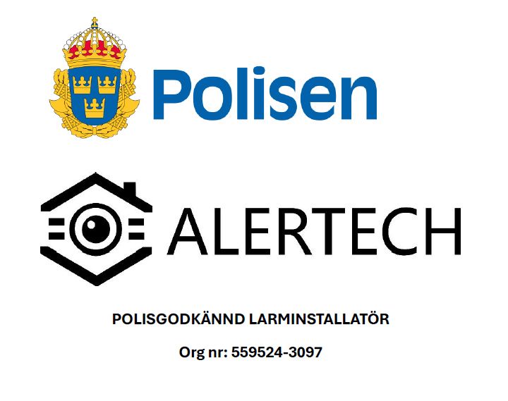 Alertech AB är Polisgodkända att bedriva larminstallationer, vilket innebär att vi uppfyller Polismyndighetens högt ställda krav på kompetens, säkerhet och seriositet.